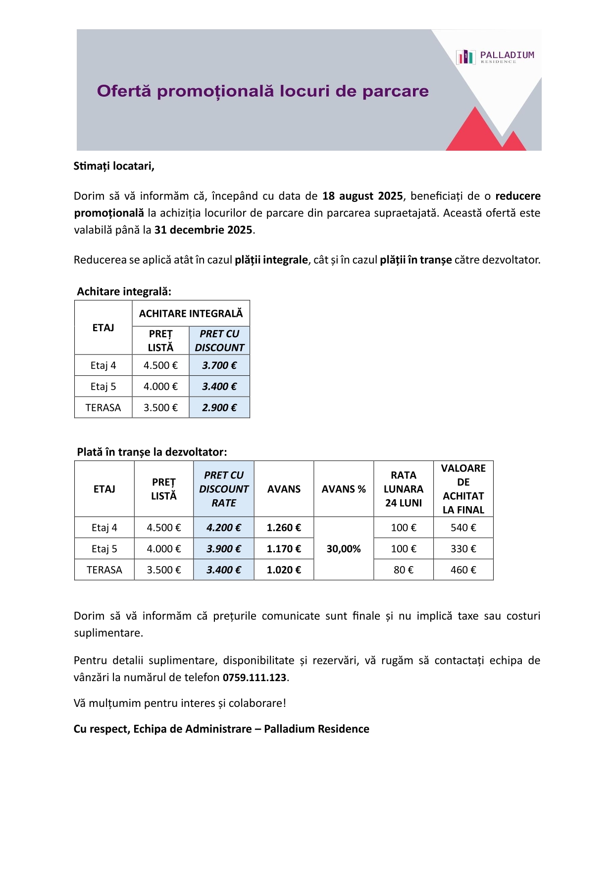 Pentru mai multe detalii referitoare la ofertele noastre, te invităm să iei legătura cu consultanții noștri de vânzări, la numărul de telefon 0759.111.123. Suntem aici pentru a-ți oferi toate informațiile de care ai nevoie, pentru a face o alegere inspirată pentru tine și familia ta.